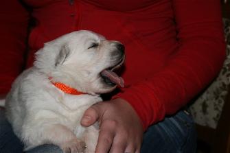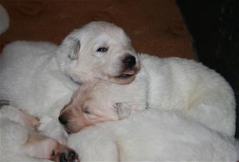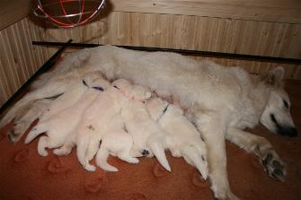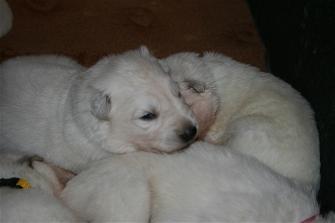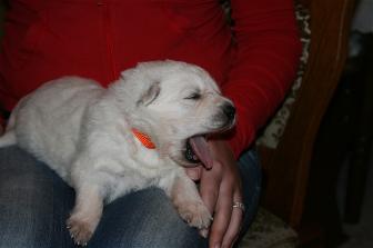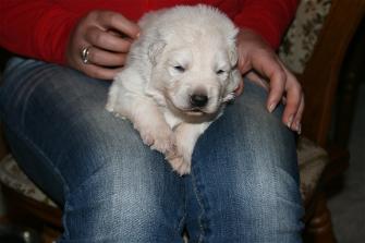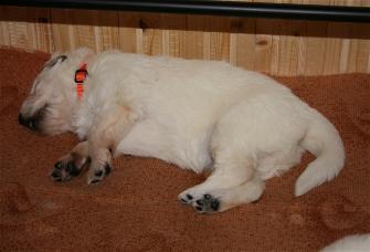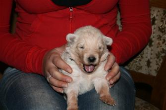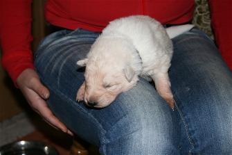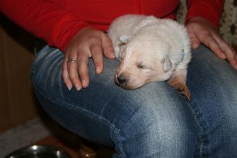 Die Welpen öffnen am 11. Lebenstag ihre Augen und unternehmen die ersten wackeligen Gehversuche.